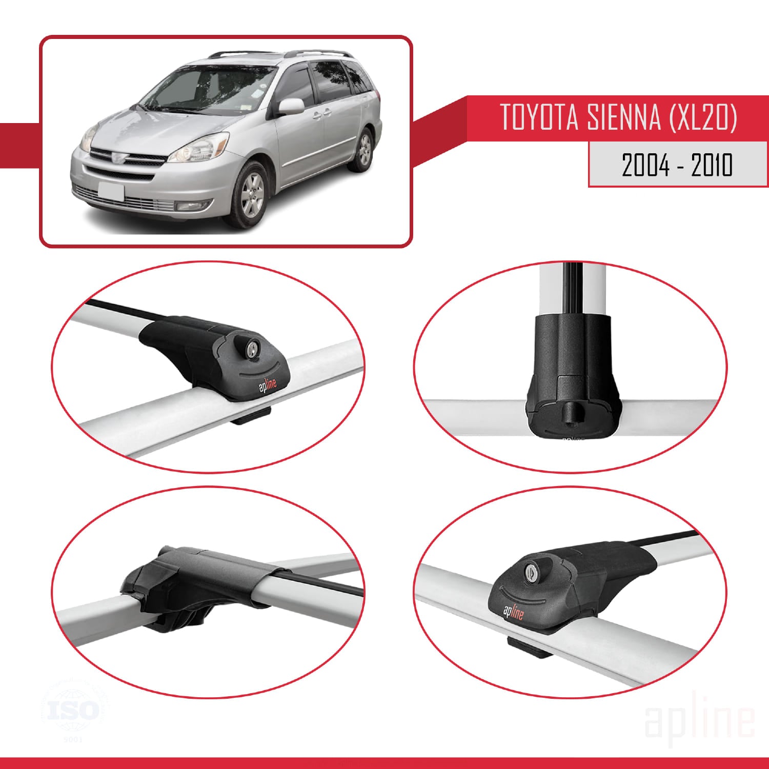 Compatible avec Toyota Sienna 2 (XL20) 2004-2010 ACE-1 Barres de Toit Railing Porte-Bagages de Voiture Gris Aluminium 2 Barres
