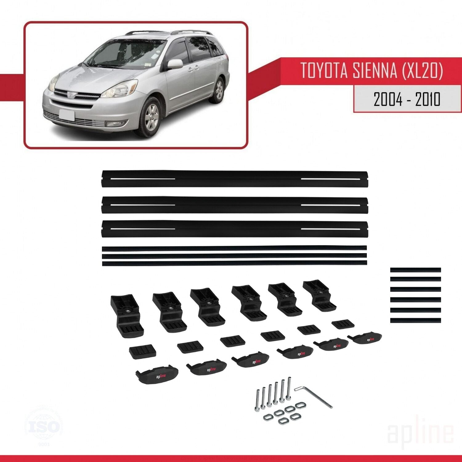 Compatible avec Toyota Sienna 2 (XL20) 2004-2010 BASIC Model Barres de Toit Railing Porte-Bagages de Voiture Noir Aluminium 3 Barres