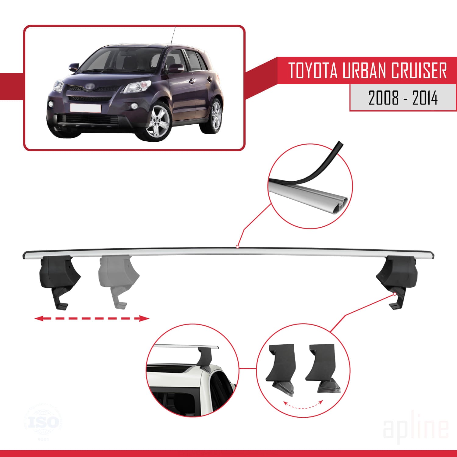 Compatible avec Toyota Urban Cruiser 2008-2014 ACE-4 Barres de Toit Railing Porte-Bagages de Voiture Gris Aluminium 2 Barres