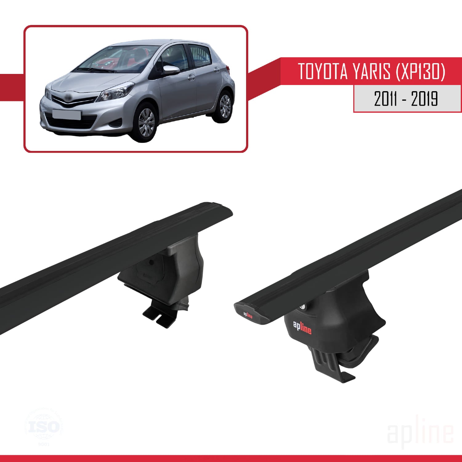 Compatible avec Toyota Yaris 3 (XP130) 2011-2019 ACE-4 Barres de Toit Railing Porte-Bagages de Voiture Noir Aluminium 2 Barres