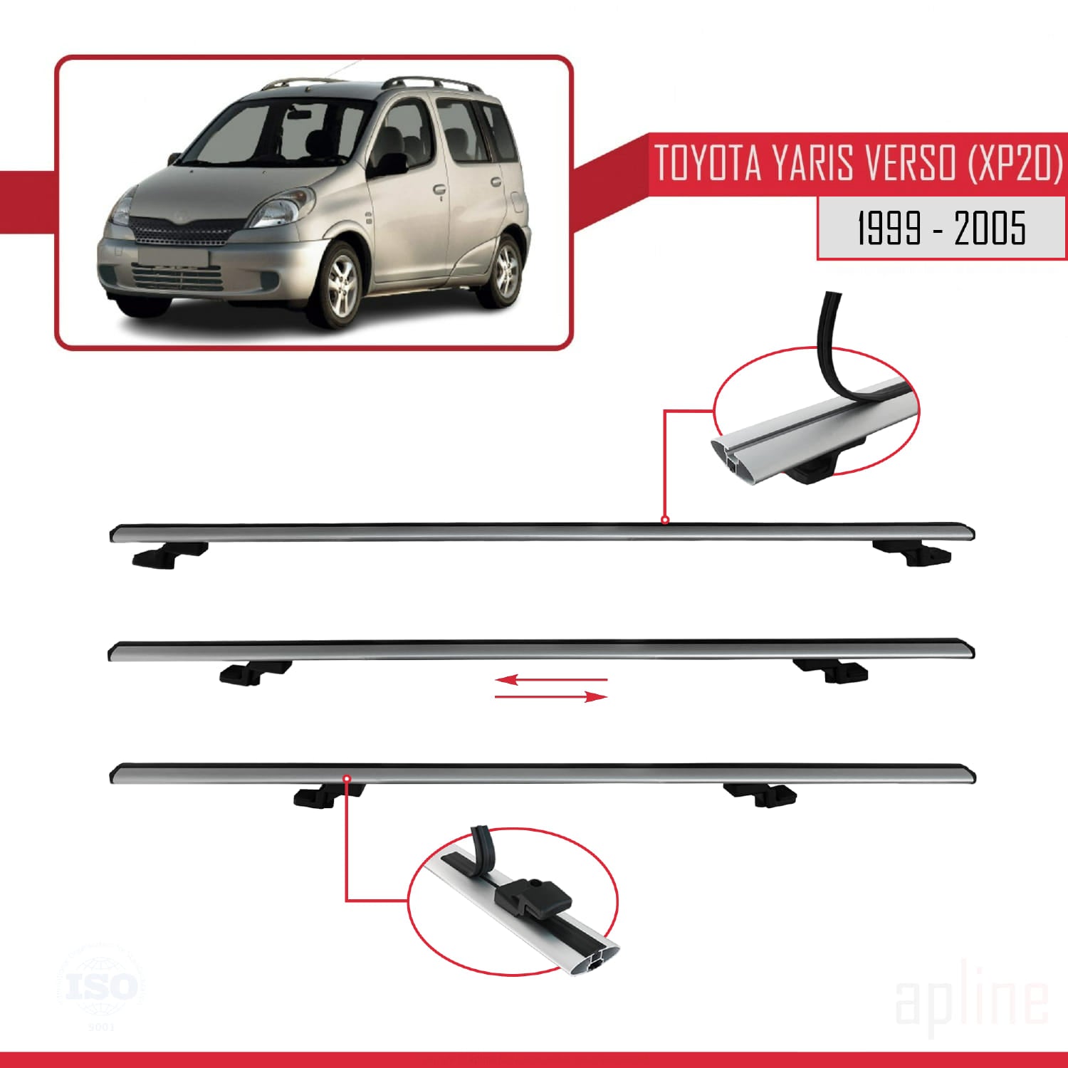 Compatible avec Toyota Yaris Verso (XP20) 1999-2005 BASIC Model Barres de Toit Railing Porte-Bagages de Voiture Gris Aluminium 3 Barres