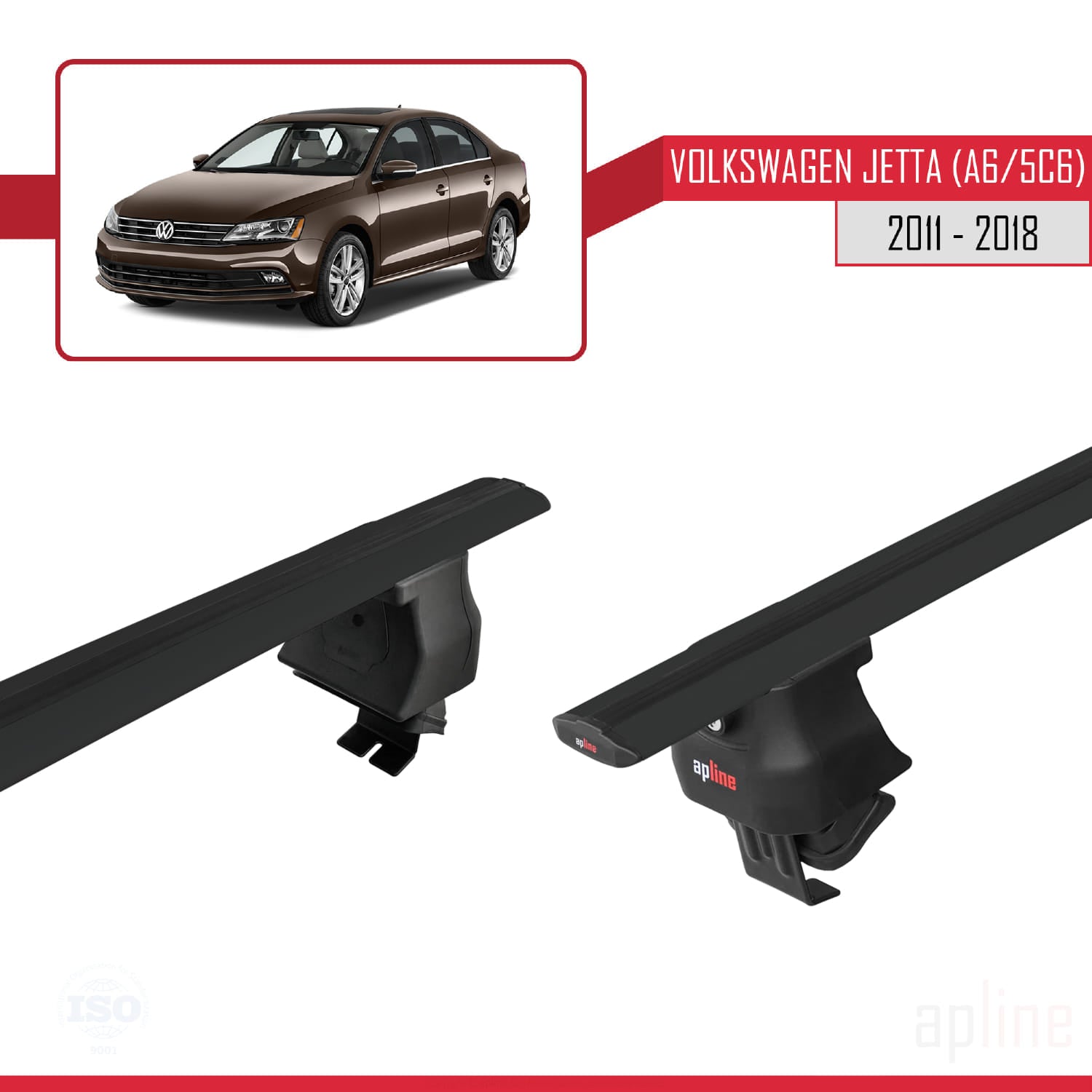 Compatible avec Volkswagen Jetta 6 (5C6) 2011-2018 ACE-4 Barres de Toit Railing Porte-Bagages de Voiture Noir Aluminium 2 Barres