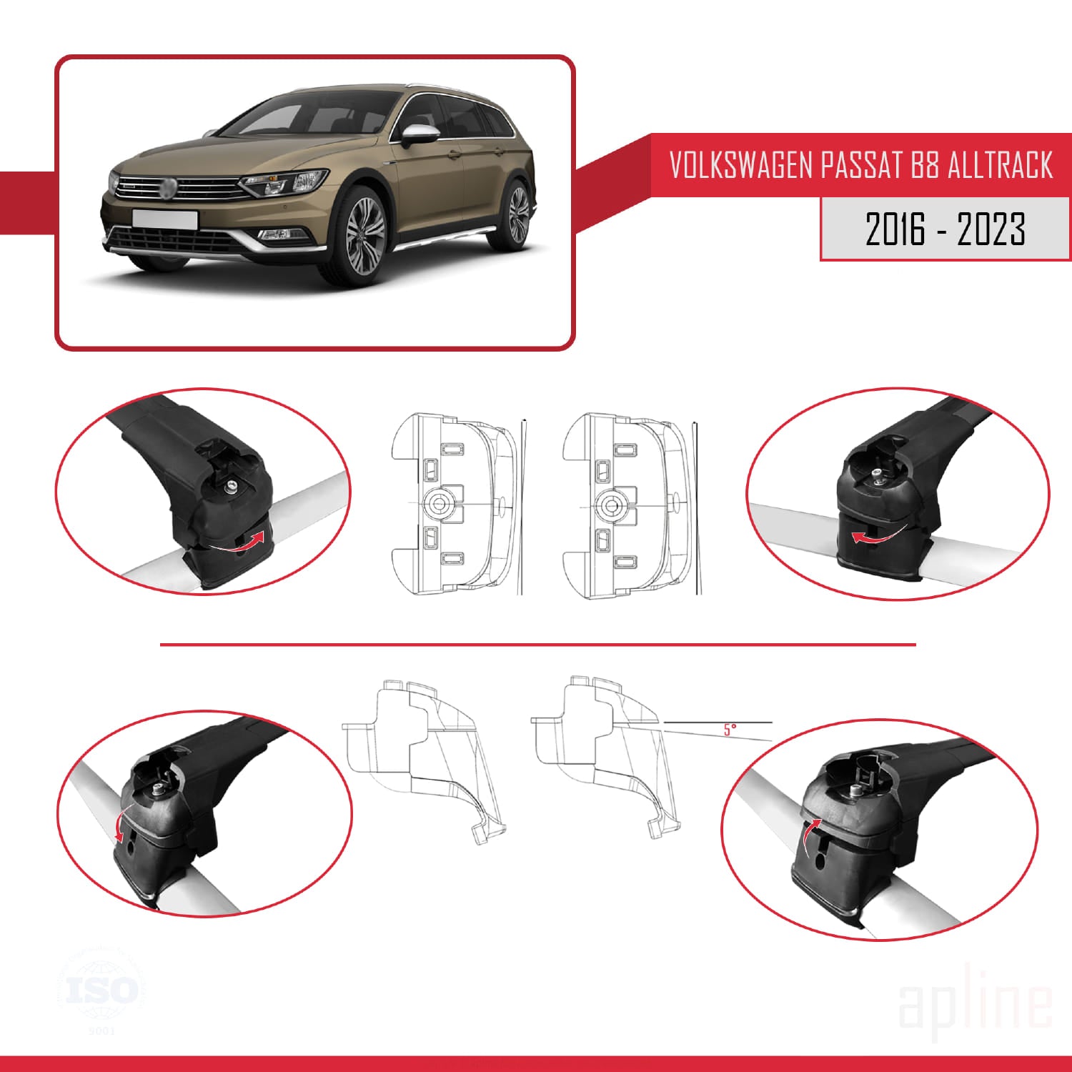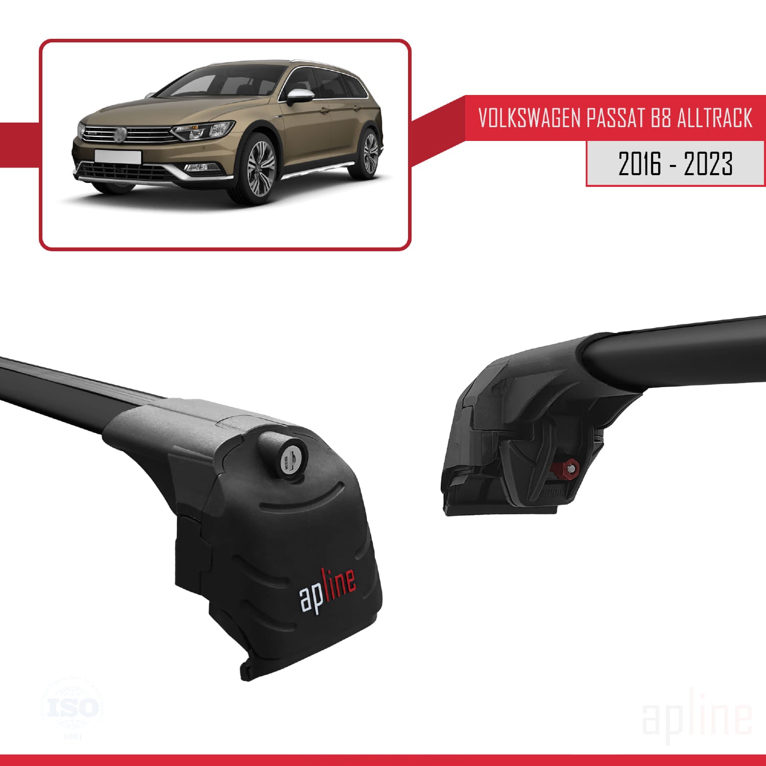 Compatible avec Volkswagen Passat B8 (3G) Alltrack 2016-2023 ACE-2 Barres de Toit Railing Porte-Bagages de Voiture Noir Aluminium 2 Barres