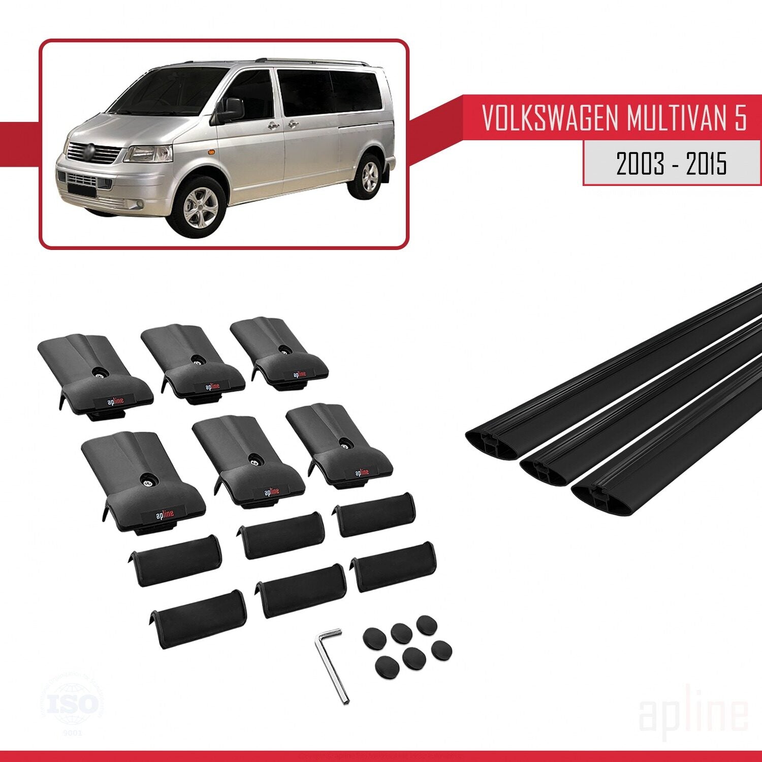 Compatible avec Volkswagen T5 Multivan 2003-2015 FLY Model Barres de Toit Railing Porte-Bagages de Voiture Noir Aluminium 3 Barres