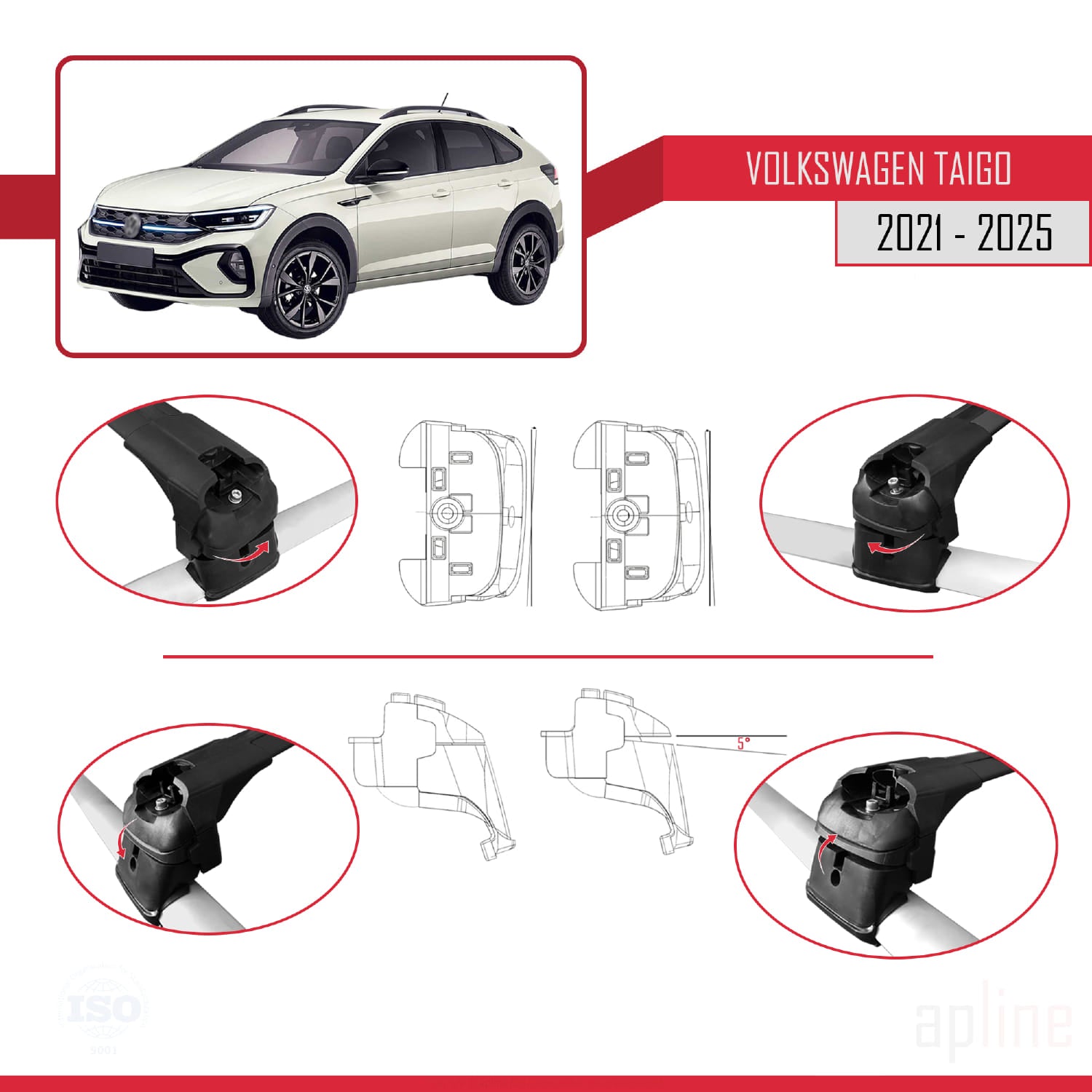 Compatible avec Volkswagen Taigo (CS1) 2021-2025 ACE-2 Barres de Toit Railing Porte-Bagages de Voiture Noir Aluminium 2 Barres
