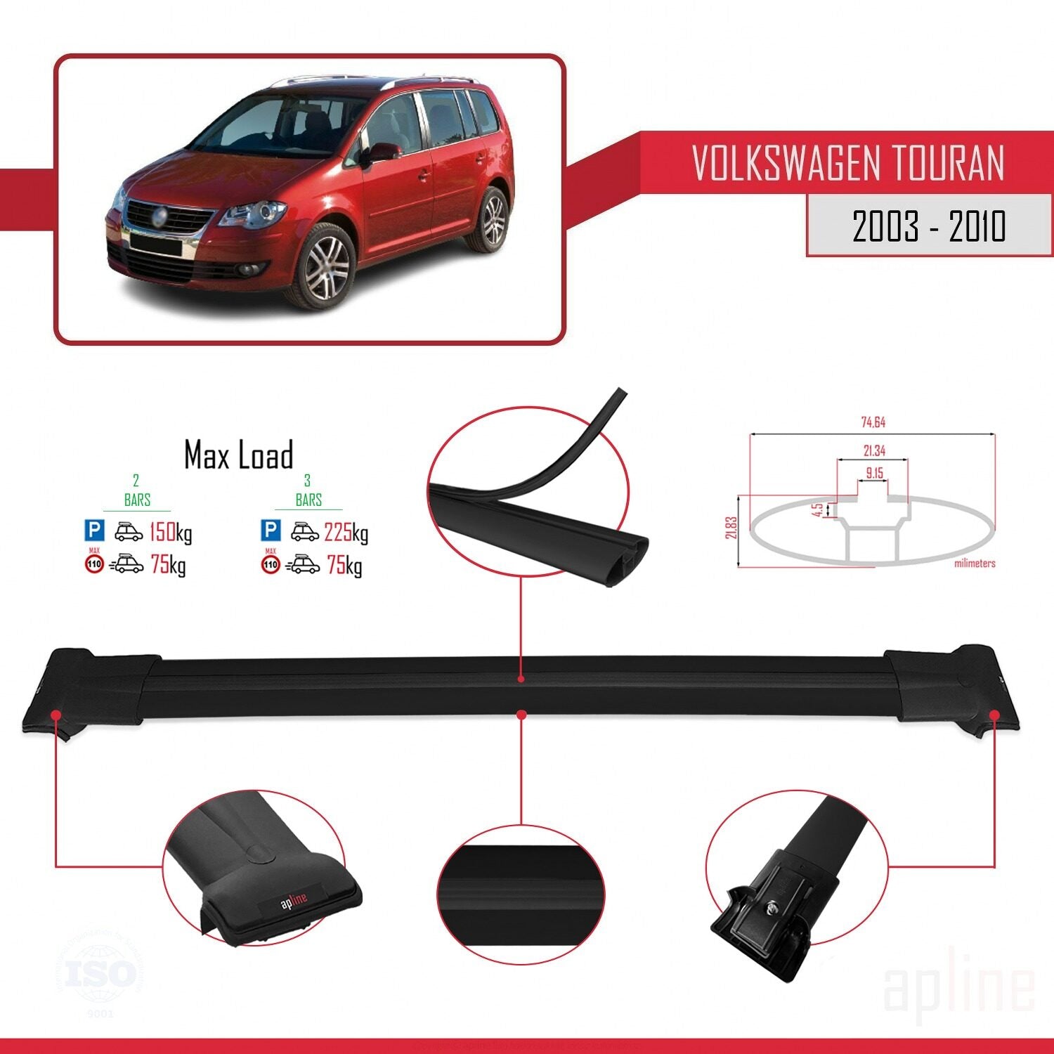 Compatible avec Volkswagen Touran (1T) Post-Facelift 2010-2015 FLY Model Barres de Toit Railing Porte-Bagages de Voiture Noir Aluminium 2 Barres