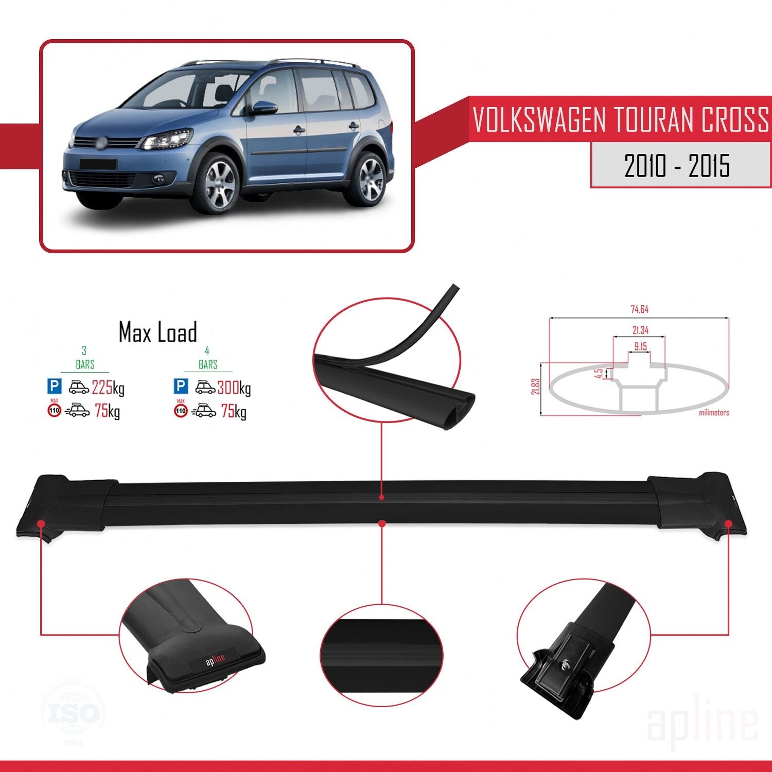 Il est utilisé pour transporter des charges sur votre véhicule. Il est nécessaire pour l'assemblage du porte-vélos, du porte-skis, du coffre de toit, etc. Ce produit se monte sur les barres de toit du véhicule. Ce produit ne peut pas être utilisé dans les véhicules sans barres de toit. Il est compatible avec les modèles présentant un espace entre le toit du véhicule et les barres de toit.