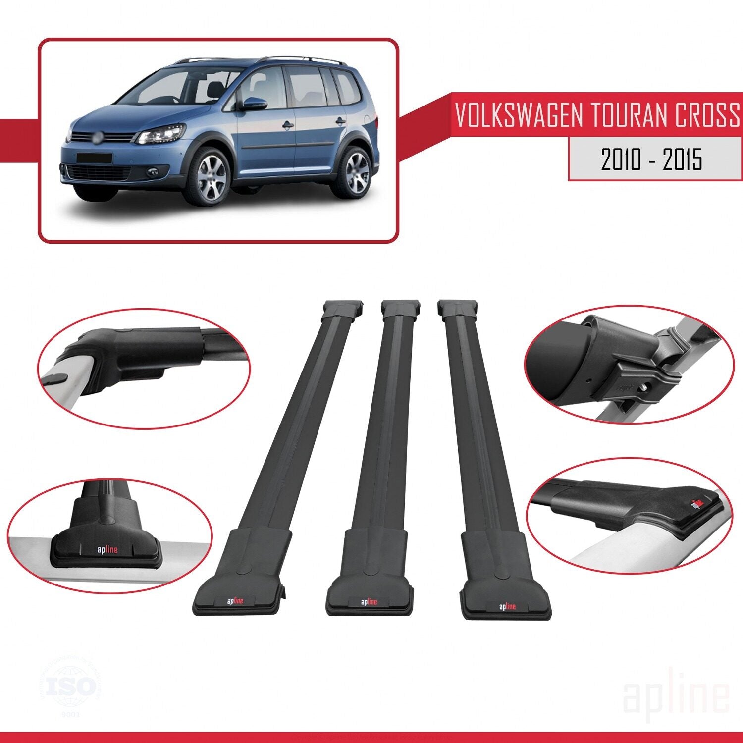 Compatible avec Volkswagen Touran Cross Post-Facelift 2010-2015 FLY Model Barres de Toit Railing Porte-Bagages de Voiture Noir Aluminium 3 Barres