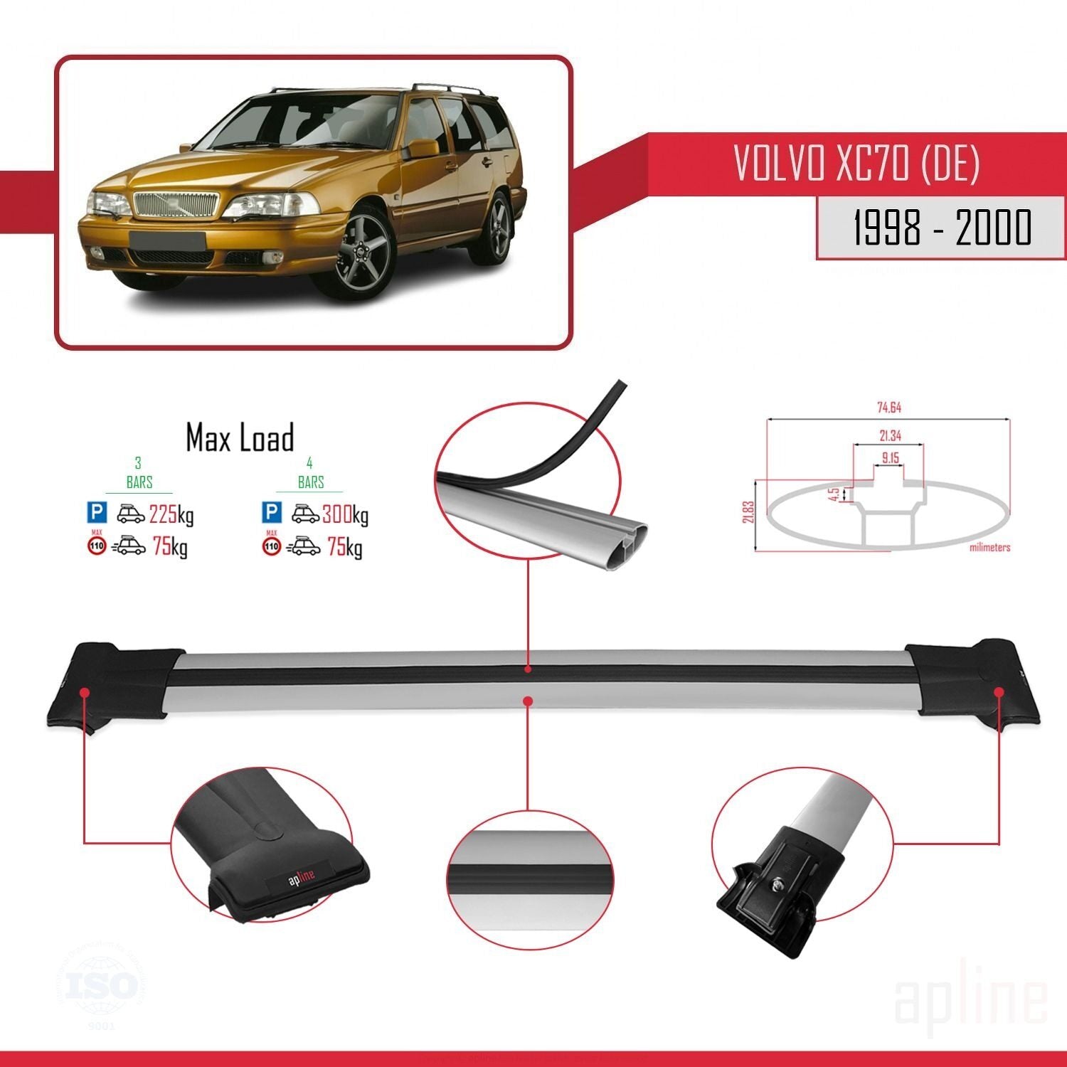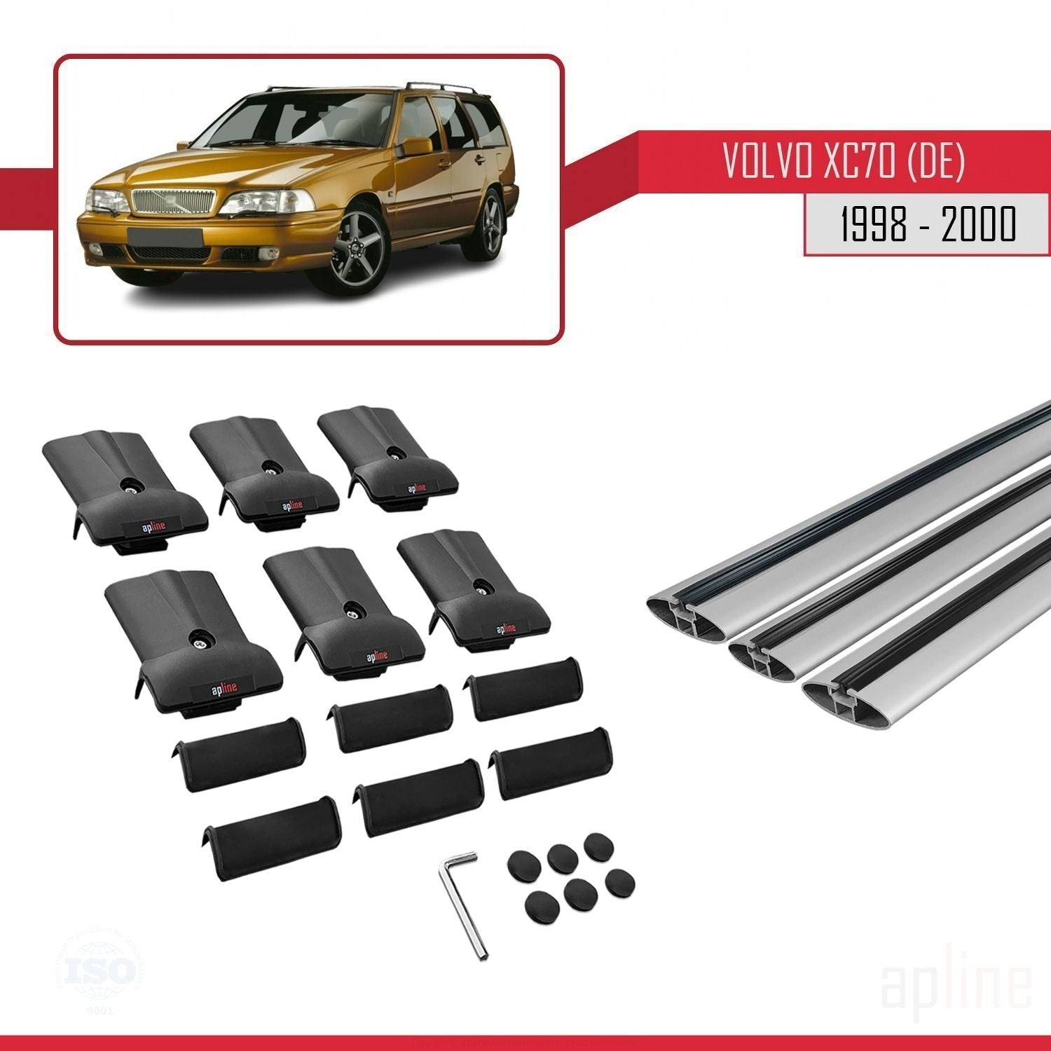 Compatible avec Volvo XC70 1998-2000 FLY Model Barres de Toit Railing Porte-Bagages de Voiture Gris Aluminium 3 Barres