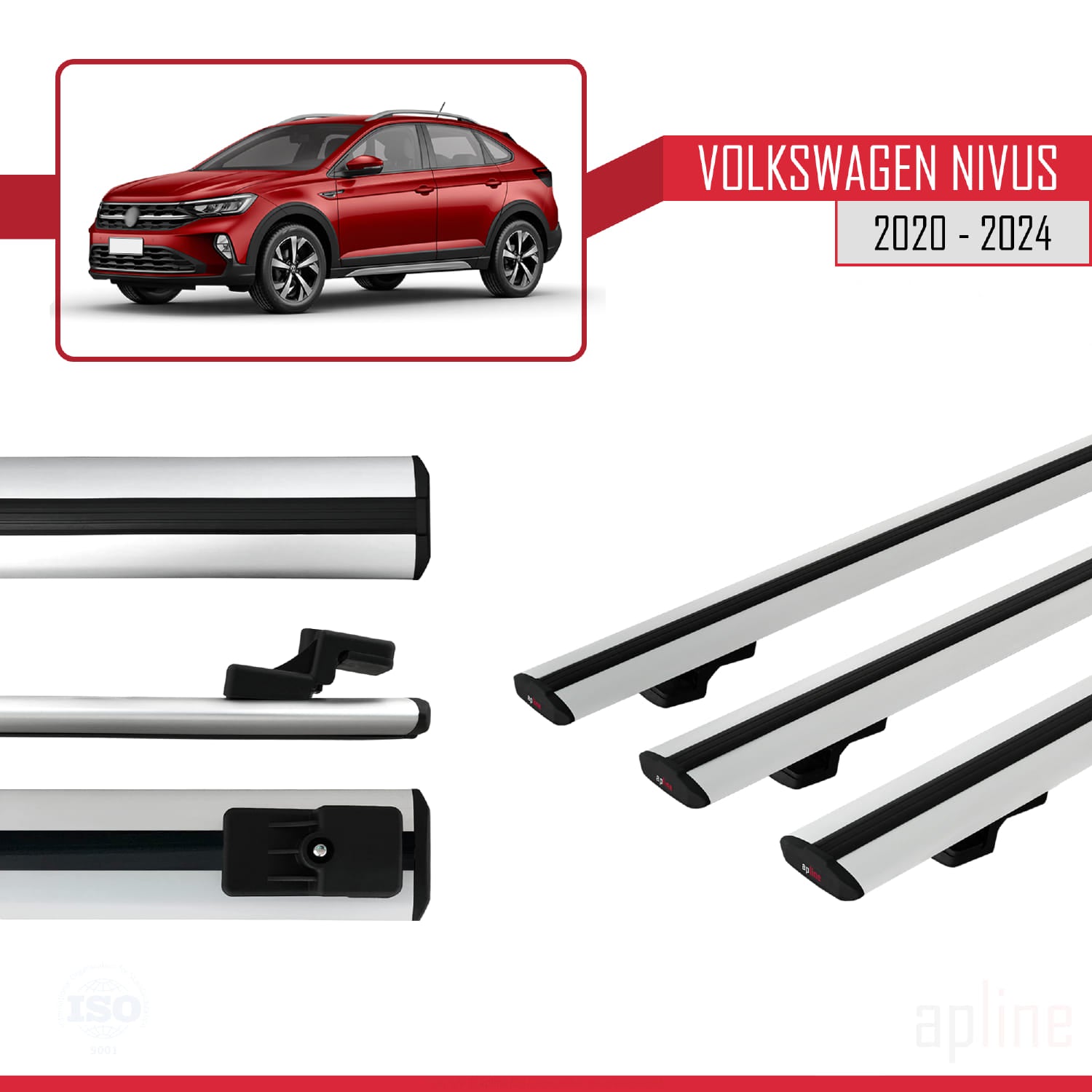 Compatible avec VW Nivus 2020-2024 BASIC Model Barres de Toit Railing Porte-Bagages de Voiture Gris Aluminium 3 Barres